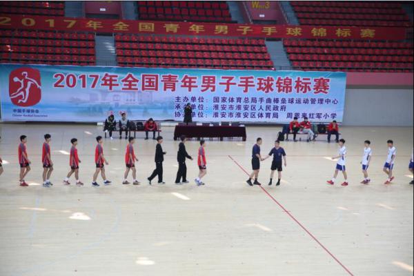 4月1日下午,由国家体育总局手曲棒垒球运动管理中心主办、淮安市淮安区人民政府承办、淮安市淮安区体育局、周恩来红军小学协办的“2017年全国青年男子手球锦标赛” 在江苏淮安周恩来红军小学体育馆开赛。